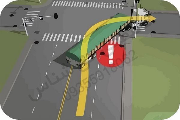 سوال #20: در تصویر بالا به دنبال کامیون به تقاطع میرسید . کامیون با دادن علامت قصد گردش به راست را دارد . ولی به سمت چپ متمایل میشود . چکار باید انجام داد ؟